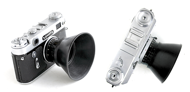 ロシアレンズを使うようになってから、フードについて色々考えるようになりました つまり、今のレンズ特に国産のレンズ群に比べ レンズへの直射光などの影響が、もろに画像に影響するからです それだけ、今のレンズのコーティングや鏡胴内部の反射処理が進んでいるのでしょう これはロシアレンズに係わらず、クラシックレンズ一般に言えることですね むかし、まだコマーシャル分野でHASSELが主流だった頃も 当時のCレンズ(T*)では、これが大きな問題でした 直射光はもとより、高輝度のものが画面近くにあるだけで 大きなハレーションに悩まされ、ストロボを生に近い状態で当てる漆器類の撮影などでは 画面内に不可思議な靄がよく出現しました CFレンズでもその手の話はよく聞きましたが、それ以降は使っていませんので 最近のレンズでは解消されたのでしょうか? この問題と、壊れやすさ→修理代の高さ→修理納期の長さなどから HASSELが少なくとも人物以外の分野では敬遠されていった大きな理由のひとつでしょう 閑話休題 ロシアレンズは例え、90年代製造のレンズでも(特にレンジファインダー用) むしろクラシックレンズの範疇に属するものでしょう なので、フード・ハレ切りには特段の注意が必要です 太陽を背にしての光り物が無い被写体ならいざしらず 多くのみなさんもフードをご使用のことと思いますが 「フード、何お使いですか?」というご質問もまた多いのです ロシアの50mmレンズは40.5mm口径が多いので、いまでは汎用フードが多種発売され 余り困ることも無いでしょうが そのほかに多く使われているレンズ、例えばJupiter-12などのご苦労も よくお聞きします このレンズなどは鏡胴の奥深いところに光学系がありますので 比較的、フード無しでも大丈夫な場合が多いのですが それでもフードを付けたい場合があります ただ、このレンズに50mm用の汎用フードを装着した場合に ケラレる、ケラレないとの話もお聞きしますが 私の経験上は「個体差がある」という結果になると思います。 とにかくロシアレンズに係わらず、純正として保証されてるフードの他は まず各自でテストしてみることが必須でしょう 私のテスト法としては、レンズがフードによって一番ケラれやすくなる状態 つまり「開放絞りで無限遠」の状態で ケラれていることがわかりやすい被写体 簡単に言えば空などを撮影してみて下さい、これで、大体分かると思います (フィルターを常用されている方は、もちろんフィルターも装着して) この結果、いままでこのフードならケラれないと思っていたものが じつはカブっていた、となるケースも多いかと思います。 レンズを絞って、中距離の被写体を撮影していてもわからないものです ロシアレンズにも純正フードというものが存在しますが レンジファインダーレンズ用としては、4種類見たことがあります 1)角形50mm用 カブセ 2)丸形50mm用 カブセ 3)丸形沈胴50mm用 カブセ 4)丸形Jupiter-12用 カブセ (このほかにもあるのかもしれませんね) どれもネジ込みではなく、カブセ式であり固くないプラスティック製です ときたまオークションなどで出品されていますので、ごらんの方も多いことでしょう 1)のフードは比較的よく見かけますが、問題は角形ということで 回転鏡胴のレンズには使えません ヘリコイドと一緒に回っては、ケラれてしまうからです 直進鏡胴のFED-Induster系用のフードなのでしょう 2)が一般的には使いやすいものなのでしょうが、余り見ません 3)は最近見かけるようになりましたが、すごく深いフードでこれならば効果一番 だとは思いますが、絞り操作は当然やりにくいです・・・妙なフードです 4)は珍しい物だと思いますが、これまた大きく深いフードです 角度を見ると、鏡胴の斜面角度に沿って長く大きく伸ばした形状をしています これらのフードはどれも深さなどは十分で、ハレ切り効果は高いと思われますが フードが大きい分、ファインダー視野をかなり削ってしまいます ここはレンジファインダーの弱点ですね 特に4)はZORKI系ではほとんど距離計部分をも覆ってしまいます(苦笑) KIEVなどでなければ実用性は低いでしょうね またこれらのロシア製フードですが すべてカブセ式で外れやすいものです 1)のフードはお使いの方も多いかと思いますが すぐ外れませんか? 私はInduster-61にこのフードを愛用していますが レンズ前面にガラス部分が無い40.5mmフィルターのジャンクを付けて 周りにパーマセルテープなどで口径を少し大きめにして その上にカブセています、チャチな方法ですが、しっかりした装着となります まあ、無理してロシア製フードを使う必要もありません (3のフードは類例が無いものですが・・・) いろいろ探して使ってみましょう(まずテストして下さいね) #一番上の画像は装着例ですが、じつはあり得ない組み合わせがあります 角形フードにJupiter-3が付いていますが、これは私の場合ケラれます また、沈胴用フードにFED50mm/F2.0が付いていますが これ