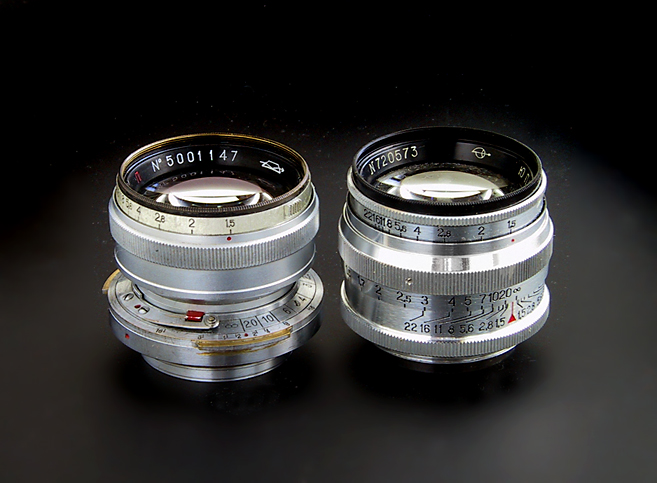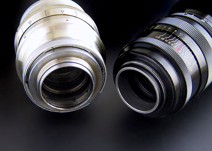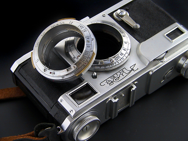 ライカマウントボディに付けるアダプターというものが存在する 非純正のレンズを使用可能にするアダプターは、数多くあるのだが それらは基本的にマウントとフランジバックを合致させる機能があればいいのだが CONTAXマウントのレンズというのは、特殊な機構が前提として存在する それは 1)標準レンズはレンズ自体にはヘリコイドを持たず、マウントの内バヨネットに装着し フォーカシング・距離計連動はボディ内蔵のヘリコイドによって行う 2)標準レンズ以外の広角・望遠レンズは、ボディに固定された外バヨネットに装着し フォーカシングはレンズ側のヘリコイドで行い、距離計連動は内バヨネットで行う つまり単にレンズとボディとを連結させるだけという構造ではないということがある しかし、ZEISSとLEICAを融合させたいという要求はやはりあり このアダプターというよりはコンバーターともいえるアイテムが存在する 古くはミランダの前身オリオン精機によるものをはじめとし 最近では海外の工房によるもの、個人での製作によるものをはじめ 製造は不明だが近代インターナショナルなどでも取り扱っていたようだ しかし、構造が複雑になるためか需要の少なさからか かなりの高価で流通しているのが現状だろう 先日、本当にたまたまなのだが 一つの個体を入手したので、これはその簡単な試用レポートである 画像の通り、このコンバーターはそれ自体にヘリコイドを持っている この回転により、標準レンズでのフォーカシングと 全レンズでの距離計連動機構を担当しているのである これらの製品は情報の少なさから、ネット上でも多くの固体を見つけられないのが現状だが やはりその作りには多少の差違があるようだ 例えば、私の個体ではヘリコイドはむきだしになっているが この部分がCONTAX=KIEVボディ同様に、カバーされているものもある おそらく、パーツ自体もCONTAXやKIEVからの流用パーツで製造されているものも多くあるだろう 使用法は、本来の使用法に準じ 外バヨネット使用レンズを装着する場合は、ヘリコイドをそれぞれ無限遠の位置で 装着させる必要がある もちろん、入手後にテストは繰り返してみたが、精度的なものはあえて述べない コンバーターとして流通している以上、精度がでているのは当然以前のものと考えるからである 使用感として一番違和感があったのは、やはりヘリコイドの部分であった 元来ボディ内に内蔵している機構を外付けとしているので ヘリコイド部分のピッチ幅の少なさからか スムースながら、重厚感は無い 標準レンズを使う場合は、粘度の高いグリスに替えることで さらに重めな感触にしたいところだが 広角・望遠レンズを使用する場合には レンズのヘリコイドの重さに、このコンバータのヘリコイドの重さが加わるという理由で むしろすかすかにスムースの方が使いやすいことだろう ここは痛しかゆしの部分でもある また、CONTAXやKIEVにあるヘリコイドの無限遠ストッパーはない 外爪のレンズ使用時には少し注意したほうがいいだろう もちろん全てのレンズで試せるものではないので 互換性については確かなことは言えないが 後玉の大きいレンズではどうだろうか? CONTAXの戦前版BIOGON・KIEVのJupiter-12の前期型の後玉がむきだしではなく カバーがついたものは使用できない 何故かというと、ライカマウントボディにはコンタックスボディには無い 「距離計連動コロ・カム」がマウント上部にあるため ここにカバーが引っかかってしまうためである ここでJupiter-12のライカマウントバージョンが、後玉にカバーが無く 初期型から後玉むきだしの状態で製造されている理由がはっきりする 戦前BIOGONの光学系を守るためには、その後玉の太さ・大きさから 「むきだしにせざるを得なかった」のであろう ちなみに同じ理由で、COSINAのSC-SKOPAR 21/25mmも装着できなかった SC-SKOPAR 35mm・BIOGON-21mmも持っていないので試していない (ロシア関連では、距離計カムのないザリヤは恐らく大丈夫だとは思うが そこまでして付ける理由も少ない気がする COSINA=BESSA関連は元々Jupiter-12の装着が不能と言われているので これも難しいのだろう) 後玉が飛び出ていないレンズは恐らくほぼ大丈夫と思われる NIKON-S系レンズについては、マウント・フランジバックは同一だが 距離計の連動値が違うため、距離計に誤差が出る このために外観は同一でもヘリコイドピッチの違う NIKON-S=LEICAアダプターが別に存在する (距離計連動を使わず、レンズの距離指標での目測撮影なら可能) また、35mm以下のレンズなら誤差が被写界深度内に納まるために可能だが 試したことは無い この場合も後玉の大きさなどで、距離計カムに干渉するものも当然あると思う 手間を持って造られ、それ故に高価なアダプターだが 当然、本来のレンズの使用感には及ばない さらに流通価格を見ると、このアダプターより高価なKIEVレンズは 希少品のORION-15だけだろう こういう趣味性の強いものにあえて存在理由や価値観